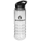 - This water bottle is made of Tritan and has a carry handle and a flip-top drinking spout.