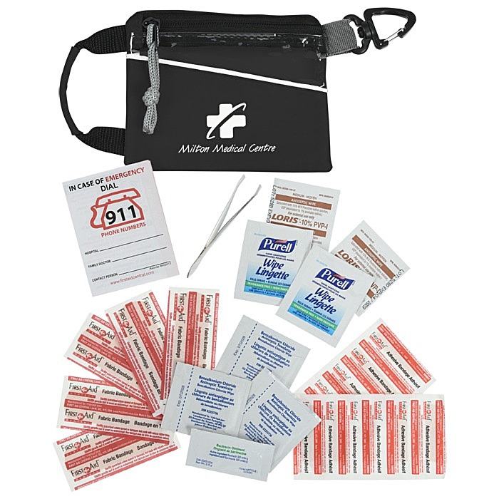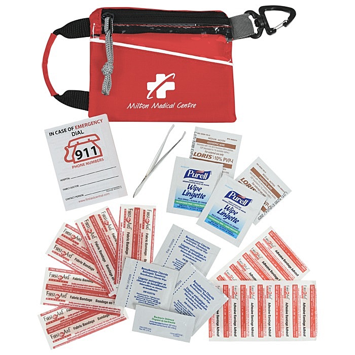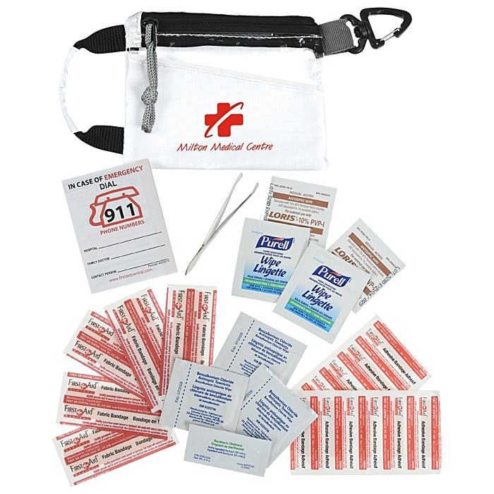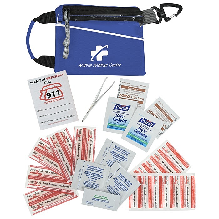 - Your price includes a one-colour imprint on the front of the first aid bag.